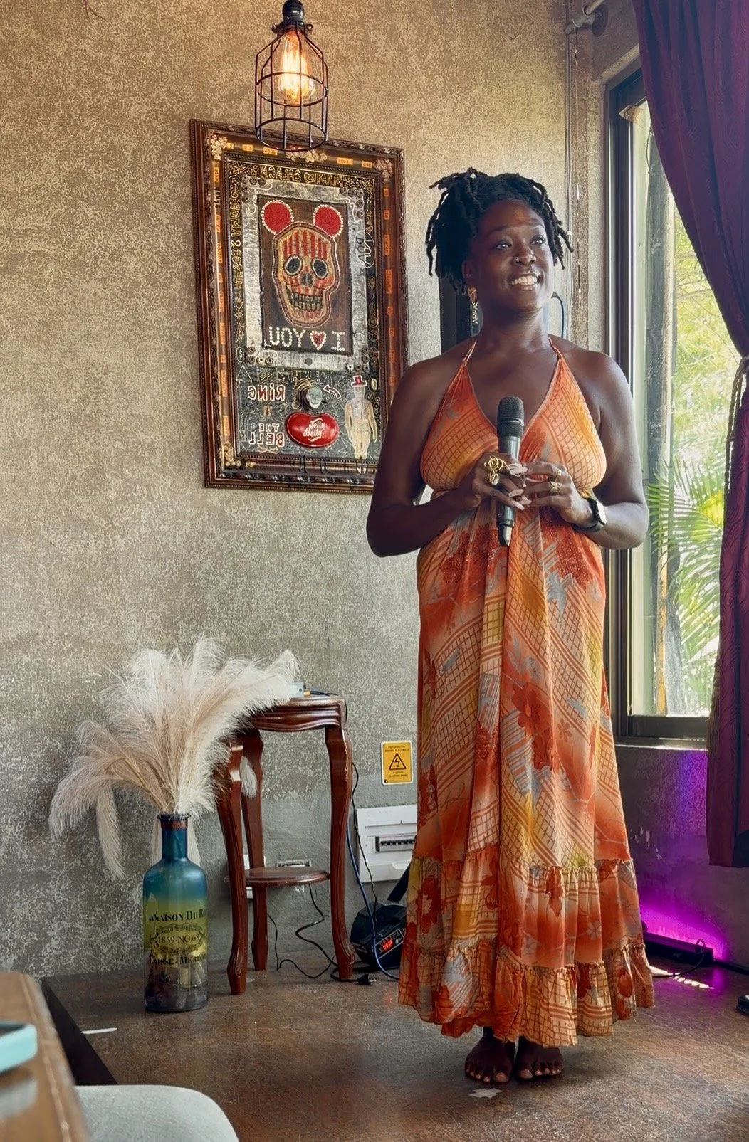 “I’m so elated to have experienced Jelan speak and talk that talk. Not only is she accomplished professionally, she’s grounded enough to remove her shoes, sing a good church hymn, and make us giggle. Her message was potent and timely and gave us all a medicine that still resonates in my cells to this day.”